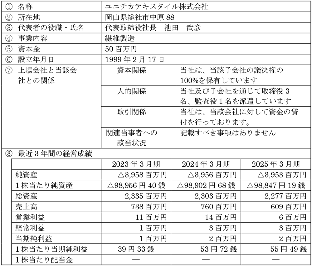子会社の解散に関するお知らせ [ユニチカテキスタイル]